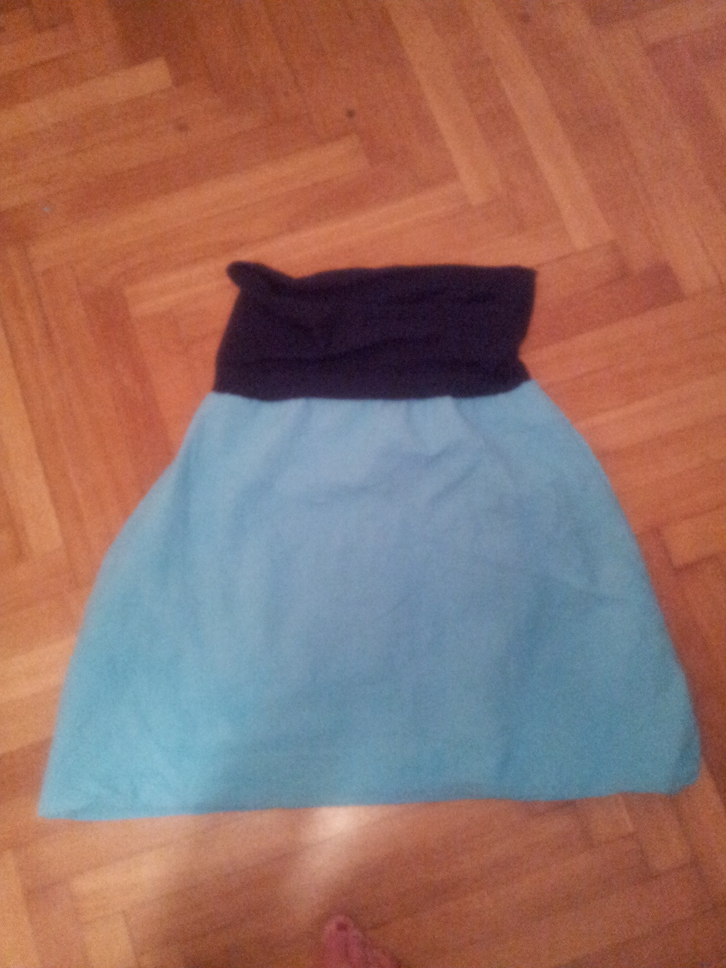 Übrigens hab ich mich erstens in der Länge so vertan und das Band dafür so eng angenäht, dass es auch als trägerloses Kleid herhalten kann (hier abgebildet mit Trägertop drunter, aber bis auf die Träger ist alles, was ihr seht, Kleid).