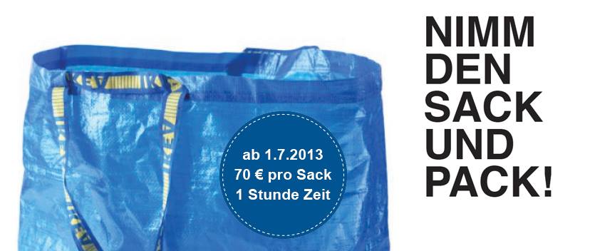 Das heißt: Ich hatte fix vor, mein Vorhaben zu brechen, und habs jetzt unabsichtlicherweise nicht getan. Auch gut. Bleibt mir nur der Hinweis: Ab Montag wird in Ikeataschen abgerechnet. 70 Euro pro Tasche, und Stopfen ist erlaubt. Viel Vergnügen! Und wenn ihr dort seids, grüßts mir die Ulla 😉