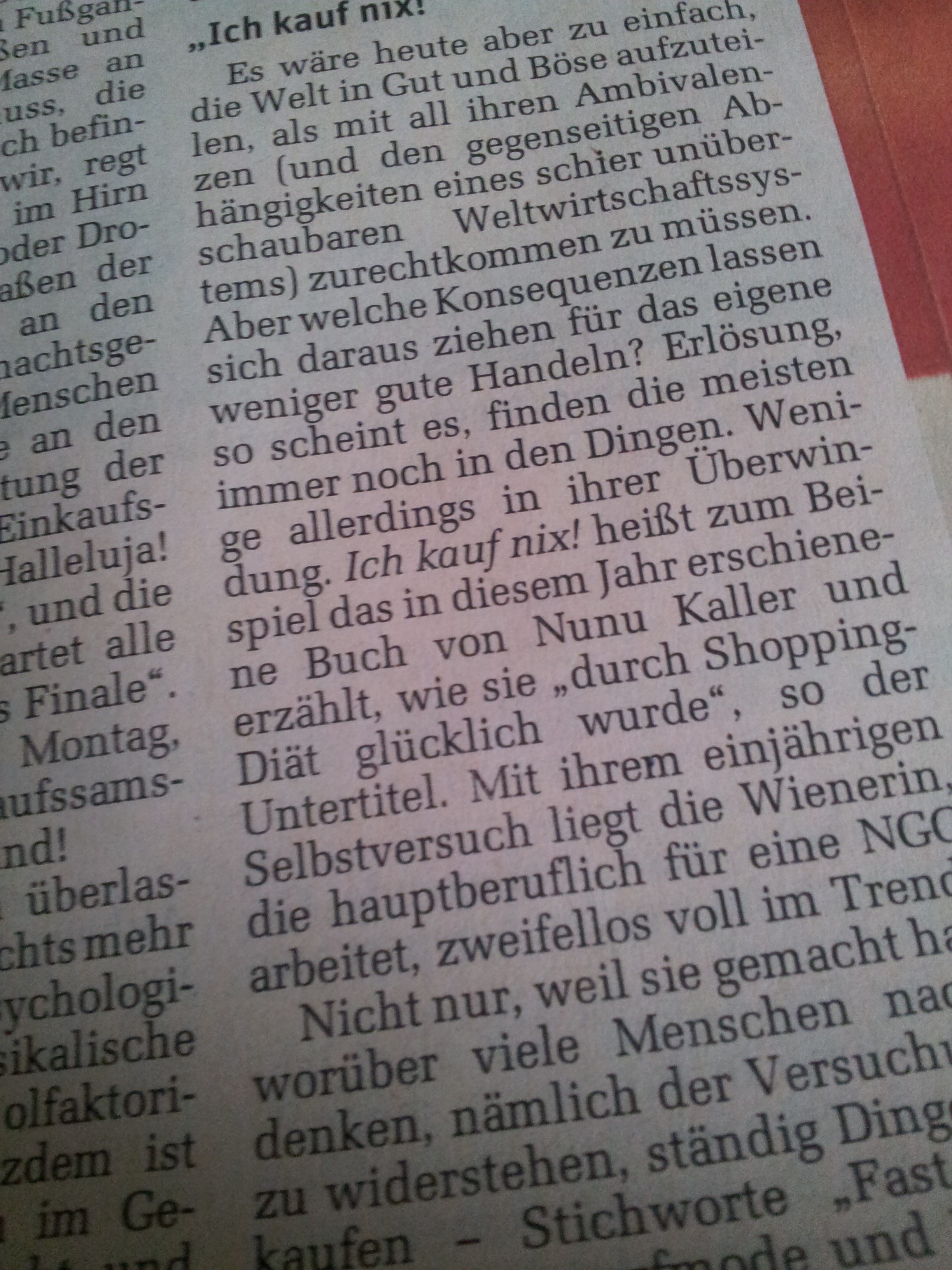 Inhaltlich hab ich grad wenig Spannendes zu erzählen. Ich meide die Einkaufsstraßen, ich hab meine Geschenke beisammen, und ich könnt den ganzen Tag schlafen oder lesen. Spannend beispielsweise dieser Artikel – die Globalisierung erklärt anhand von Nutella. Einiges drin ist eh logisch, meine Lust auf Nutella hält sich jetzt gerade trotzdem in Grenzen.