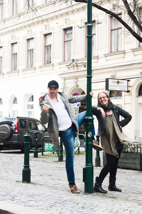 Aber jetzt, aaaaber jetzt, jetzt kommen die Fotos. Die Sachen sind (größtenteils) aus dem Green Ground, einem der beiden wirklich straighten und verdammt guten Green Fashion Stores in Wien. Der Kapitän war schwer motiviert, er war im Endeffekt so begeistert von den Sachen, dass er die rote Hose, das Rhinozeros-Shirt (für das ich zuerst ein grinsendes „blöde Kuh“ kassierte, als ich es ihm in die Umkleide hielt), ein weiteres Shirt und den Parka gleich mal kaufte.