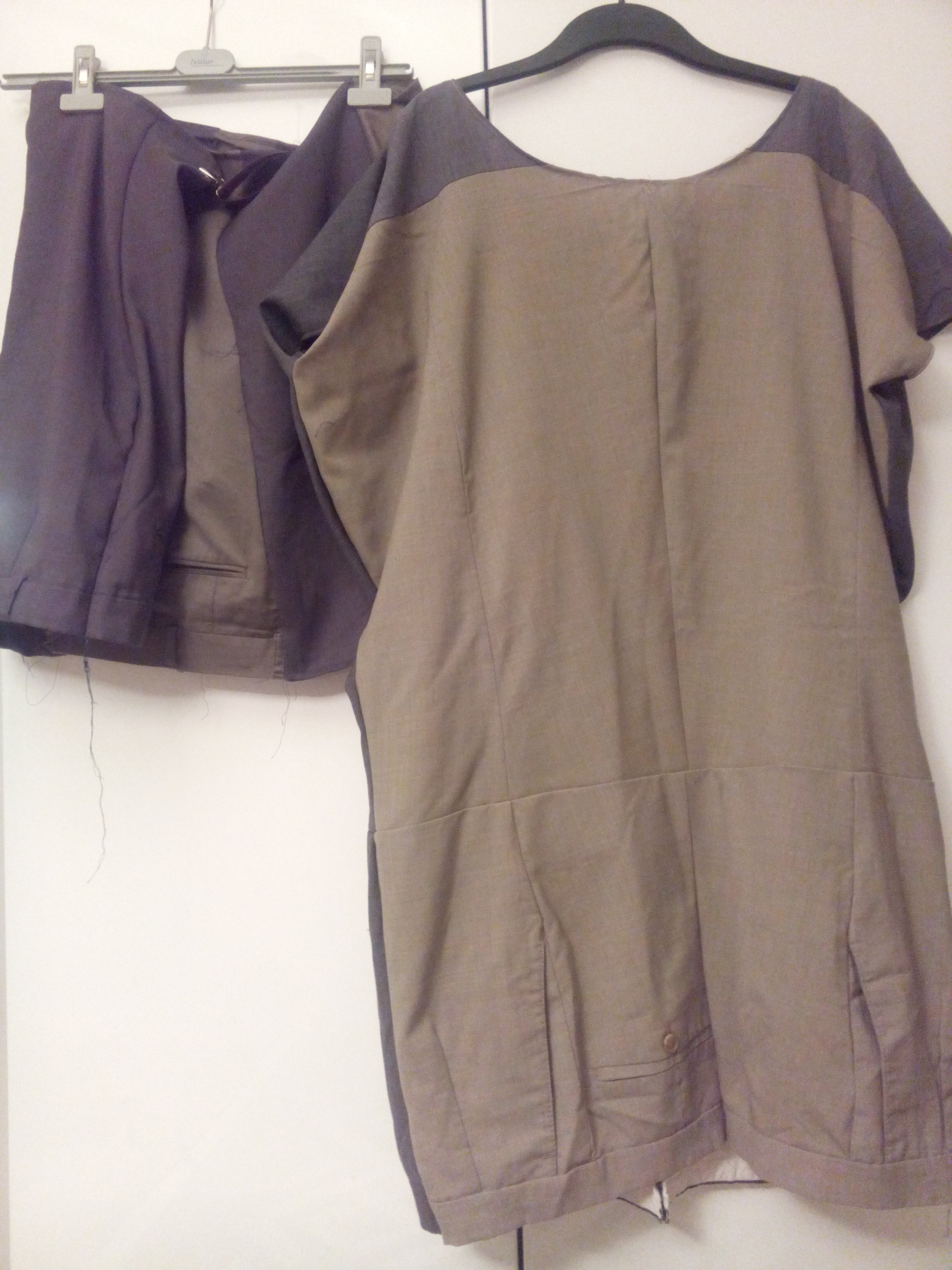 Am Wochenende, da war ich nähen. Ich war auch grillen und einer Schweizer Freundin faire Modeläden zeigen und bei der Vienna war ich auch, aber das ist jetzt nicht so rasend relevant. Aber heute, da war Nähkurs von Cloed („Klööd“. Ich hab auch lang gebraucht, bis ich wusste, wie mans ausspricht). Cloed ist die Frau hinter Milch, einem coolen Upcyclinglabel aus Wien. „Die mitn verkehrten Hosenkleidern“, nämlich. Und ein Milch-Kleid hat mir Upcycling-Fan in meiner Sammlung noch gefehlt. Leider krieg ich ihre Schnitte nicht übern Popsch, also dachte ich mir: Gut, nähst dir halt selbst eins, mit gaaaaaaaaaaaaanz viel breiterem Schnitt.
