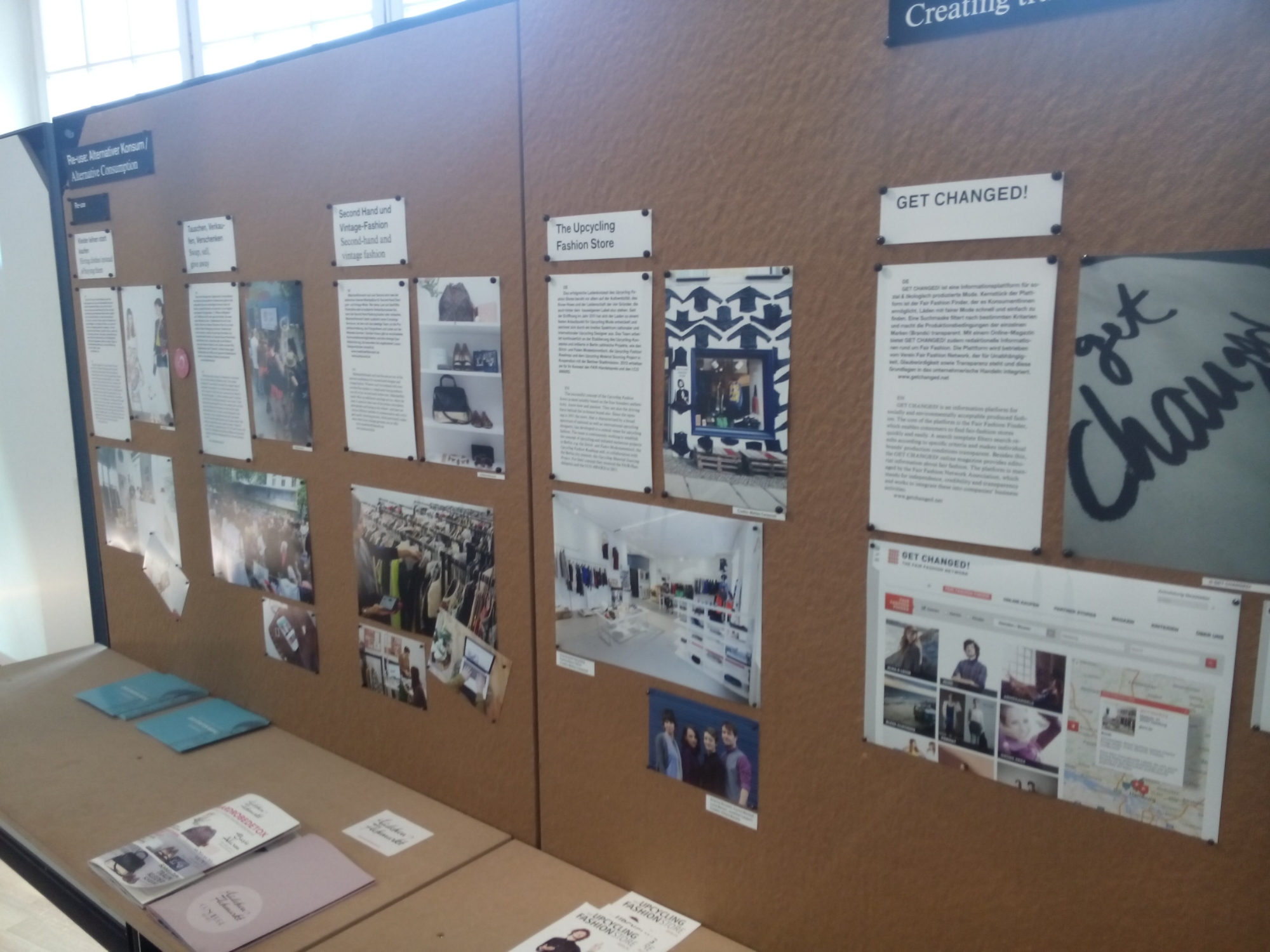 Eines eint alle drei Gruppen: Es werden keine guten Lösungsansätze angeboten. Es gibt einen versteckten Extraraum, in dem es um Slow Fashion geht, um die alternativen Produktionsweisen und alternative Konsumkonzepte. Aber während der Raum über Fast Fashion wirklich wunderbar medial aufgebaut und inszeniert ist, stehen im Slow Fashion Raum gerade mal zwei lange Kartontafeln, auf denen Dinge aufgepinnt sind. Allein der erste Eindruck verstärkt leider das, was ich so fürchterlich finde: Er treibt Slow Fashion wieder in das farblose, nach Hirsekorn schmeckende und aus den Ohren staubende Öko-Eck, Zwar werden ein paar tolle innovative Materialien vorgestellt, von verschiedenen Lederarten über tierfreundliches Angora (?) bis hin zu Bambus und Biobaumwolle. Aber die alternativen Kampagnen werden mit ein, zwei Postern abgespeist, und die mitten im Raum stehen drei Schaufensterpuppen in Slow Fashion – und zwar so avantgarde, dass die Durchschnittsschülerin, die schockiert ist von den Tatsachen rund um Fast Fashion, sowas von nicht angesprochen fühlt, dass sie erst recht ratlos aus der Ausstellung geht und in Zukunft zwar weiter zum Textilschweden, aber mit schlechtem Gewissen. Ich will dort Kleider von People Tree sehen! Röcke von der Göttin des Glücks! Jeans von Nudie oder den Gebrüdern Stitch! Die Sachen sollen angreifbar sein, und die Leute sollen doch bitte merken: Die alternative Modewelt bietet so viele Möglichkeiten, ihr könnt euch austoben, alles (außer dem Zwei-Euro-Shirt) ist machbar! Das finde ich sehr schade an dem Ganzen, denn der Teil der Ausstellung, in dem es um Fast Fashion geht, fetzt echt rein.