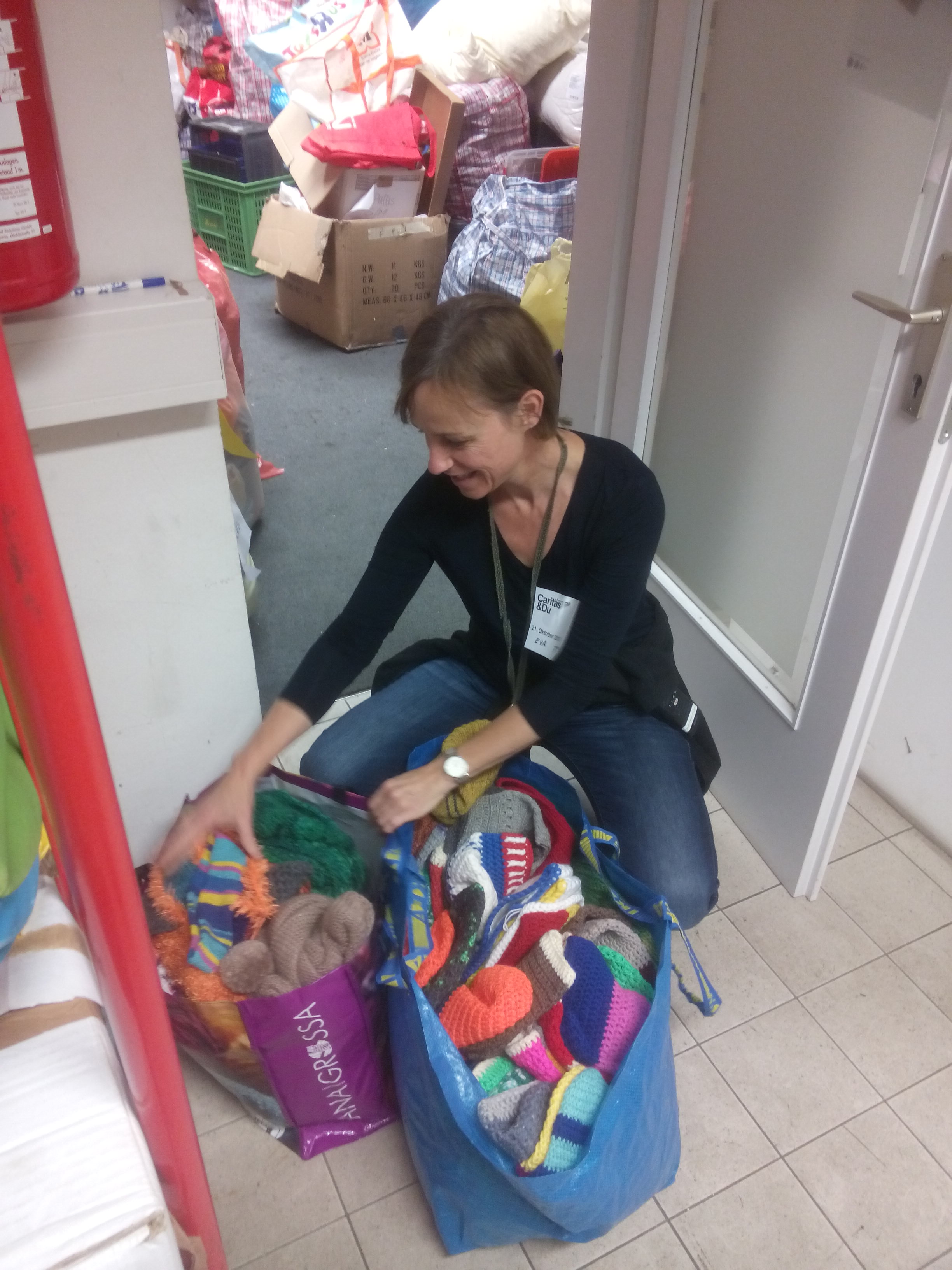 Es gibt ja Studien, die besagen, dass Helfen glücklich macht. Ich brauch da keine Studie dafür, das stimmt einfach hundertprozentig. Ich hab heute den ersten Schippel Selbstgestricktes von euch wunderbaren Menschen, die ihr für Stricken für Flüchtlinge brav Mützen und Schals und überhaupt gestrickt habt, am Westbahnhof abgeliefert. Die Freude war groß, bei Eva, die sie entgegennahm, und bei mir. Ich bin immer wieder beeindruckt, wie positiv, professionell und koordiniert die Spendenverwaltung dort abläuft. Danke nochmal an die Caritas für diese Kooperation, so können wir alle sicher sein, dass jedes Kind und jeder Mann und jede Frau die Mütze und den Schal bekommt, die ihm/ihr passen. Das freut mich sehr und macht mich glücklich. Euch auch?