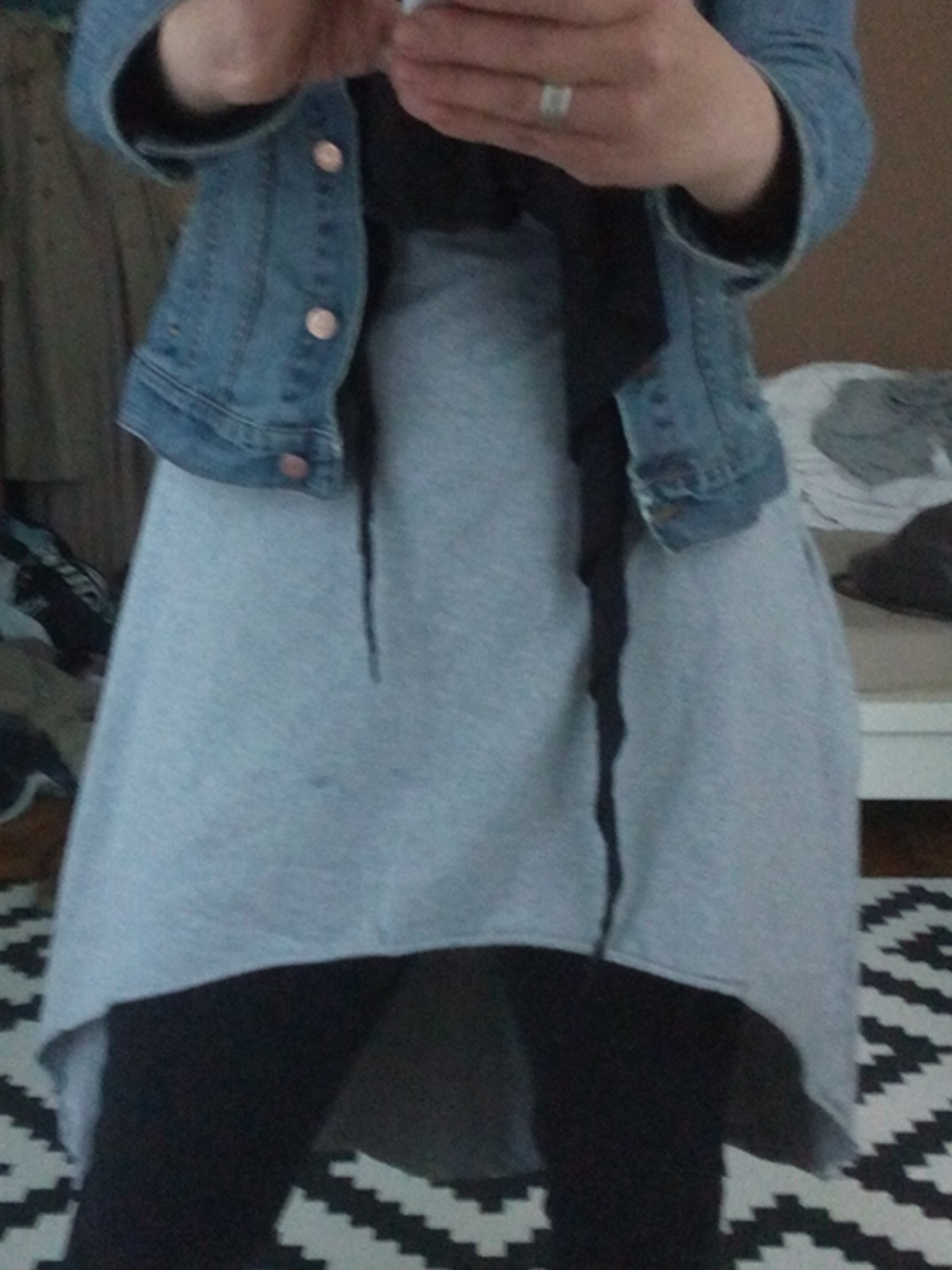 Am Wochenende, da war ich nähen. Ich war auch grillen und einer Schweizer Freundin faire Modeläden zeigen und bei der Vienna war ich auch, aber das ist jetzt nicht so rasend relevant. Aber heute, da war Nähkurs von Cloed („Klööd“. Ich hab auch lang gebraucht, bis ich wusste, wie mans ausspricht). Cloed ist die Frau hinter Milch, einem coolen Upcyclinglabel aus Wien. „Die mitn verkehrten Hosenkleidern“, nämlich. Und ein Milch-Kleid hat mir Upcycling-Fan in meiner Sammlung noch gefehlt. Leider krieg ich ihre Schnitte nicht übern Popsch, also dachte ich mir: Gut, nähst dir halt selbst eins, mit gaaaaaaaaaaaaanz viel breiterem Schnitt.