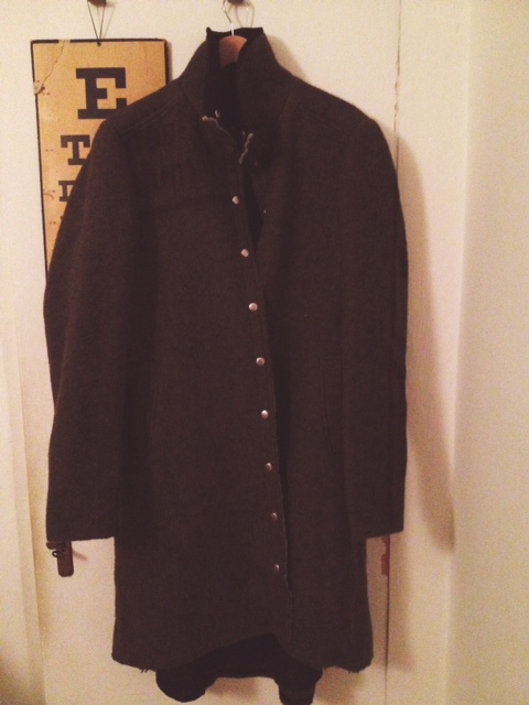 Pfuh, ich sollt dringend auf die Bremse treten, ich komm ja gar nimmer zum Bloggen! Aber eines mag ich euch nicht vorenthalten: Ihr Lieben, die ihr oft sagt: Ja pfuuuh, Ökomode is so teuer, das kann sich ja keiner leisten – zum ersten Mal muss ich euch leider recht geben. Für ein paar Minuten. Zufällig gestern Nacht, grad so in dem Stadium „Nein, ich schau jetzt keine Serien mehr, das hält mich ja nur noch länger wach“ und „Mah, so einfach Einschlafen geht aber grad nicht“ auf Pinterest herumgesurft. Und diesen Mantel gefunden. Jaaaa, jetzt werden sicher viele sagen, dass er euch ja gar nicht gefällt, dieses Fetzenteil. Was soll ich sagen: Ich habe mich auf den ersten Blick und unwiderruflich verliebt. Ich sah den Mantel und dachte mir: Upcycling at its best. Ökomode! Stylish! Avantgarde! Yeah!
