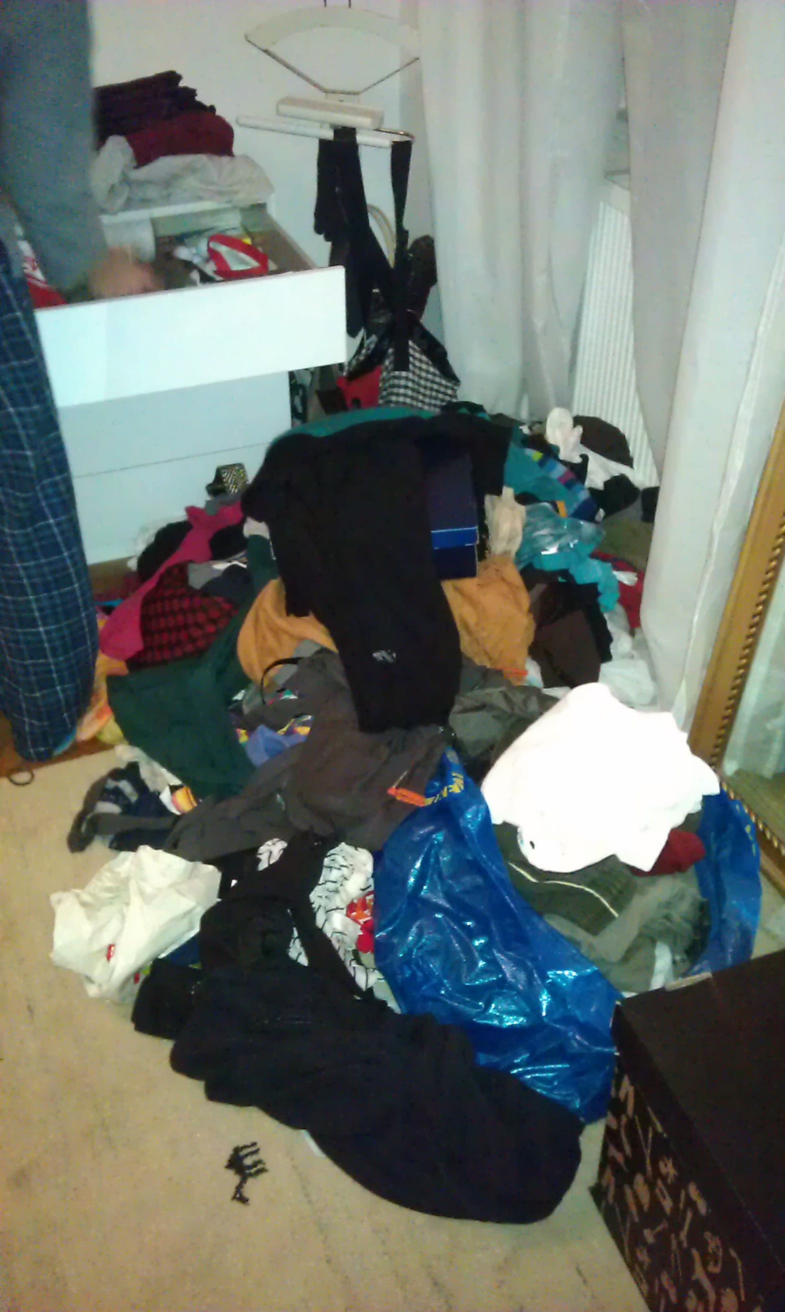 Gut, wenn man genau hinschaut, sind es gar nicht sooo wenige Kleidungsstücke, ich habe beim ersten Durchschauen folgendes entdeckt: Skinny Jeans dunkelblau, weite Hose dunkelblau, Jogginghose, Trägertops blau, weiß, mittelblau, kurzärmlige Bluse, langärmlige Bluse blau und weiß, Langarm Jerseytop blau, weiß, Blaue Bikerjacke, grauer Schal, Blauer Rock, Wickelrock Jeansartig, Jeansjacke, Jeansbluse, Blazer, türkis Tunika, türkis Bluse, Das kleine Blaue, dunkelblaues Ballonkleid, Blaues Trägerkleid. Uff, doch gar nicht so wenig, aber es passte doch anscheinend alles in ihren 23kg schweren Koffer.