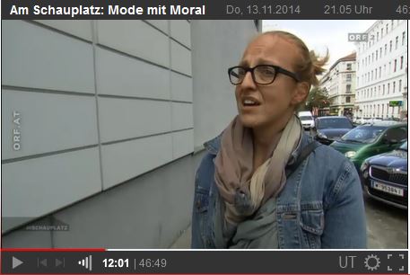 So, eigentlich wollt ich heut den zweiten „es kotzt mich an“-Skandal posten, aber mir ist was dazwischengerutscht: Gestern war ich im Fernsehen! Am Schauplatz nämlich. Die haben sich nämlich angeschaut, wie man „richtig“ Kleidung kauft – und ich hab über den Greenpeace-Report geredet. Ich habs mir gestern live aus lauter Nervosität nicht anschauen können. Aber schön, wenn man merkt, was für Sendungen der Freundeskreis so schaut. Wurde zeitgleich angetwittert von Daniela, angefacebookt von Eva, Doris und Sabine, angsmst vom Gregor, angerufen von Mama (vorher. „Du, der Schauplatz is. Geht um deine Fetzen.“ – „Ich weiß. Ich komm vor.“ Höhöhö…). Ich hab einmal eine Chemikalie falsch gsagt (NP statt NPE), aber ansonsten: Uff. Erleichterung. Und: Wie wunderbar ist diese Sendung? Sie haben sich echt viele Aspekte angeschaut.