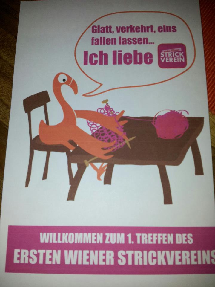 Vorfreude! Allzuviel gibt es dazu nicht zu sagen. Erstens: Danke tausendmal für Organisation und Flyer und alles Pipapo der Frau ohne Klumpert, zweitens: Aufs Bild klicken und zur Veranstaltung gelangen, dort zusagen und weitere Freunde einladen, ihr kennt die ungeschriebenen Facebookgesetze. Und Drittens: Zur Einstimmung nochmal der Artikel in der Wiener Zeitung von der wunderbaren Sabine Karrer über den ersten Strickfilm (viele Links, alle führen euch wo anders hin. Schön, so ein Internet!)