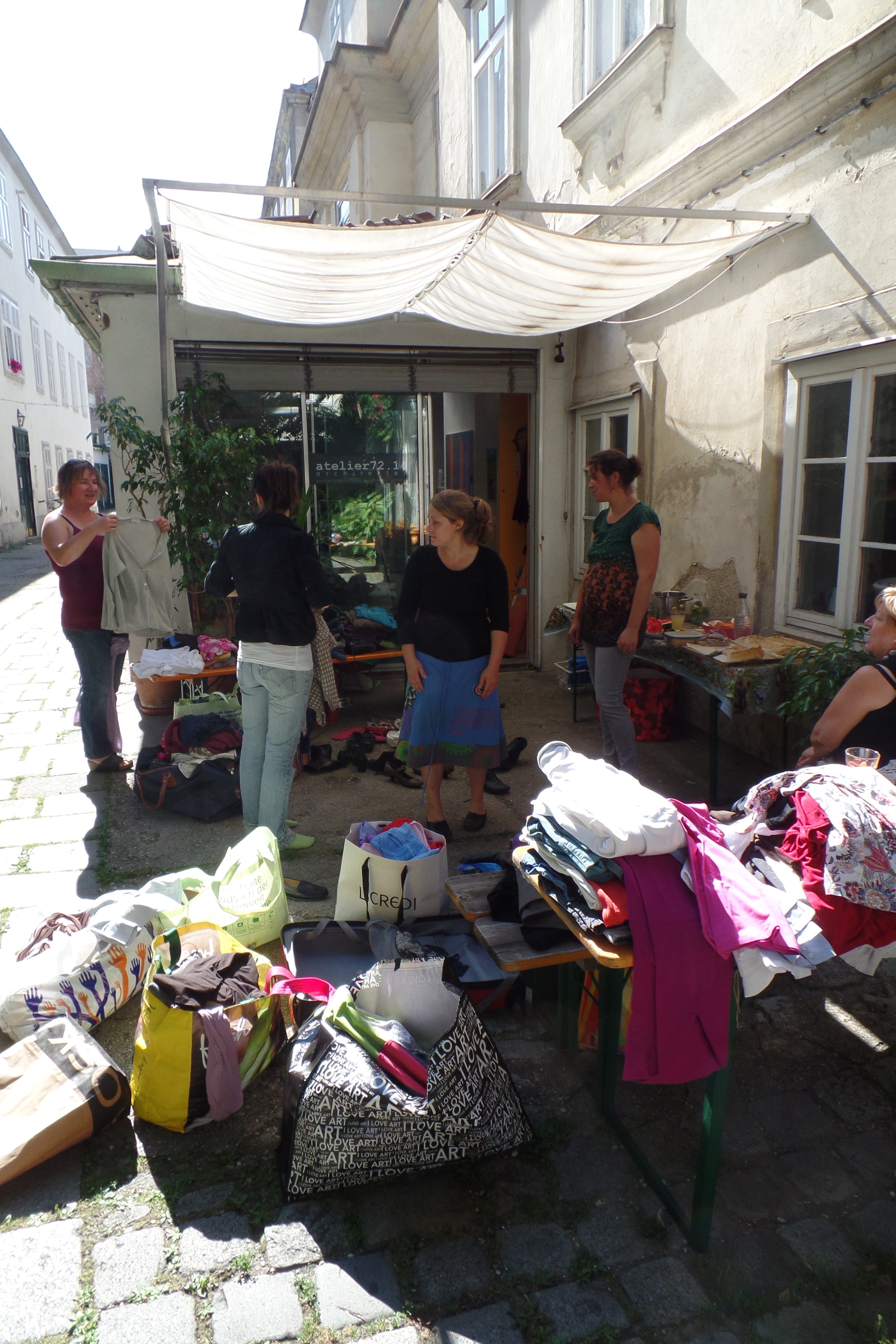 Allerdings, und da seid jetzt ihr gefragt: Uns ist unsere Location für Wien abhanden gekommen. Wir brauchen einen Raum, in dem ca. 80 Leute (auf einmal – insgesamt hoffe ich natürlich auf viiiiel mehr Besucher, aber mehr als 80 auf einmal werden erfahrungsgemäß nicht anwesend sein, das ist immer mehr so ein Kommen und gehen) plus viele Kleiderständer bequem Platz haben, das ganze möglichst Öffi-nah und zentral, und so günstig wie möglich. Und cool muss es sein 🙂